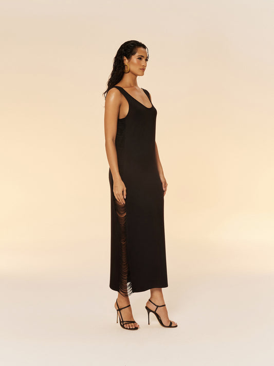 Regular price 385.00 SARRegular priceUnit price per385.00 SARSale price 385.00 SARSIDE FRINGE DRESS IN BLACK