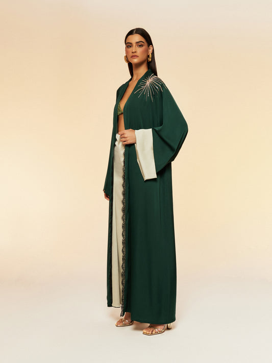 Regular price 1,900.00 SARRegular priceUnit price per1,900.00 SARSale price 1,900.00 SARLAYALI KIMONO IN EMERALD GREEN
